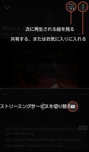 読み込みが終わると検索結果が表示されます。検索結果画面では再生やシェア、歌詞などが確認できます。